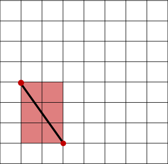 이 두 점을 포함하는 가장 작은 직사각형을 만들면 아래처럼 빨간 영역의 직사각형을 만들 수 있다.