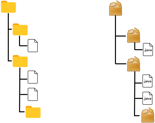 기본적으로 자바 패키지는 디렉토리 구조를 가진다. 실제로 자바 프로젝트를 생성해서 패키지를 생성하면 점(.)를 기준으로 디렉토리가 생성되고 그러한 파일 시스템을 가진다.